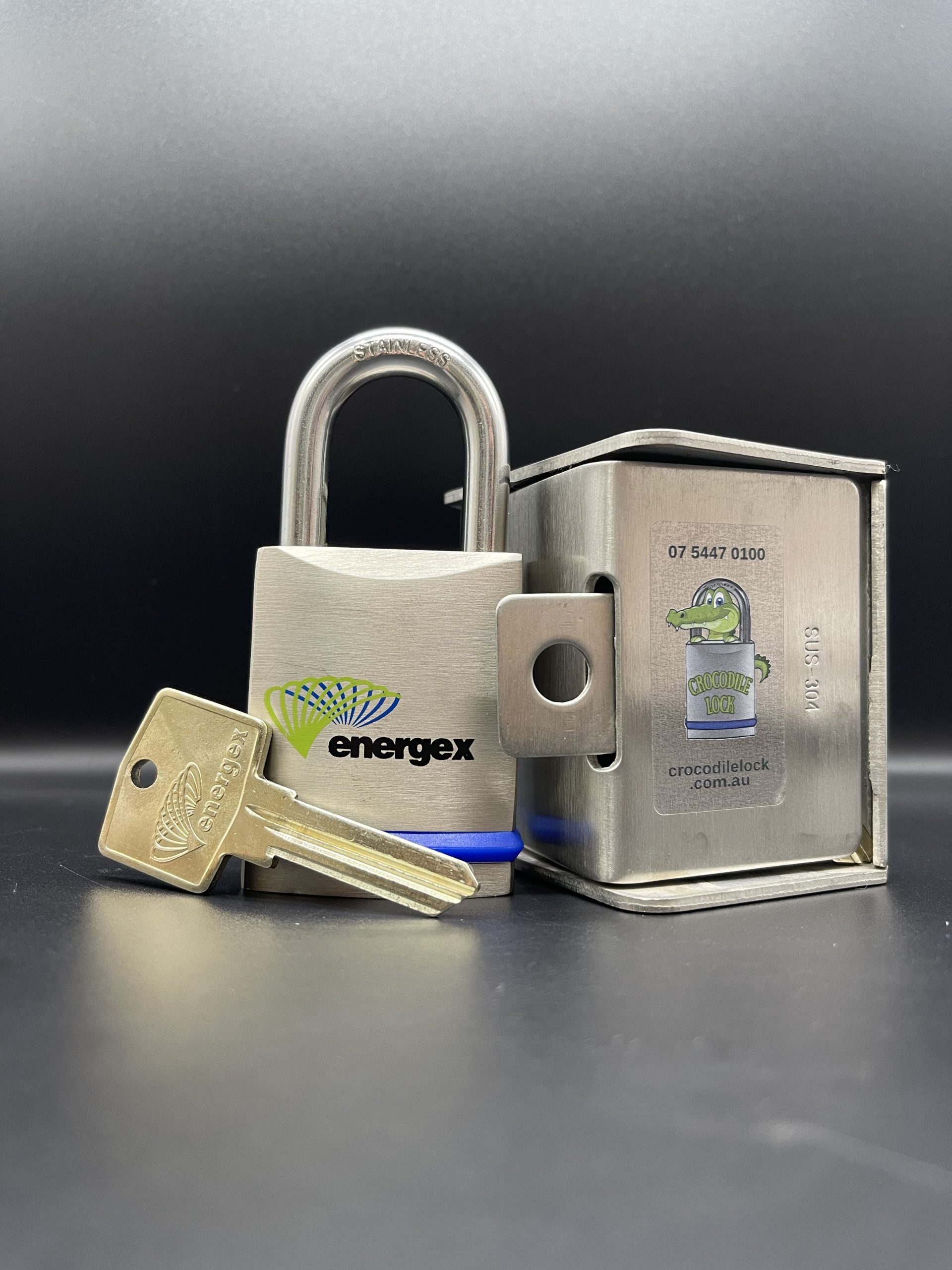 - Stainless Steel Shackle and double ball bearing locking padlock on Energex Key System with 1 keys supplied. See Energex Padlock Video.